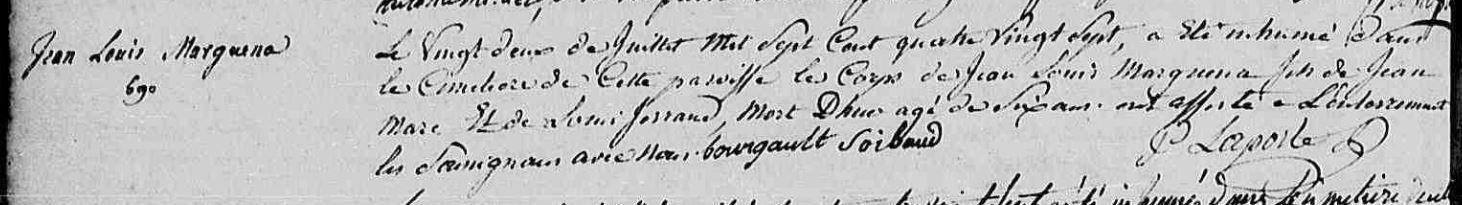 Sépulture MALGUENAC (MARGUENA) Jean Louis - 1787 - Lorient |