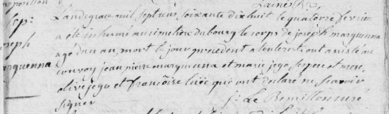 Sépulture MALGUENAC Joseph - 1778 - Camors |
