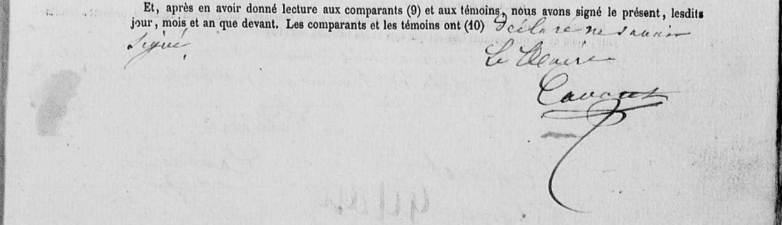 | Enfant(s) de MARGANA François et de GAHINET Marie : - MARGANA Adolphe Marie (Naissance : 1881 Décès : 1930) Union 1907 : FALHER (LE) Marie - MARGANA Louis Marie (Naissance : 1883 Décès : 1915) Union 1909 : MEAUX (LE) Marie - MARGANA François Marie (Naissance : 1885 Décès : 1886) - MARGANA Marie Séraphine (Naissance : 1887) Enfant(s) de LEVE (LE) Laurent et de MARGANA Marie : - LEVE (LE) Jean François (Naissance : 1882) - LEVE (LE) Marie Angèle (Naissance : 1885) Union 1905 : COUGOULAT Pierre |