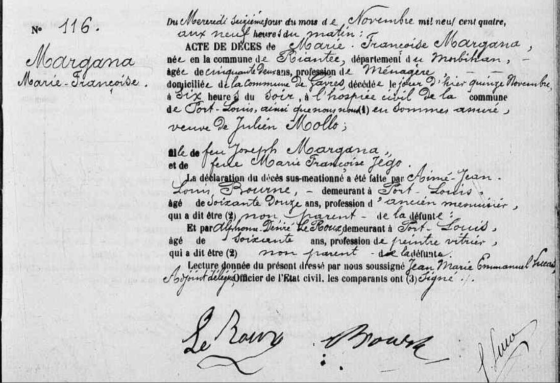 Décès MARGANA Marie Françoise - 1904 - Port-Louis |
