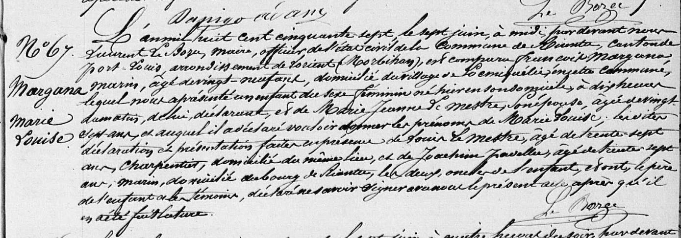 | Naissance MARGANA Marie Louise - 1857 - Riantec |