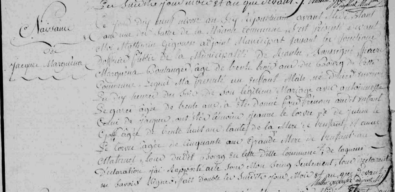 | Naissance MARGUENA Jacques - 1798 - Riantec |