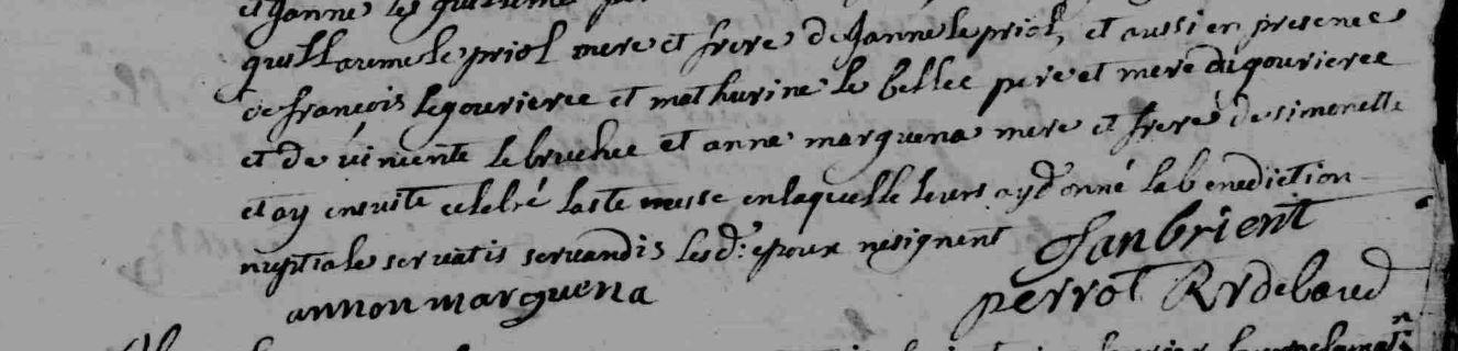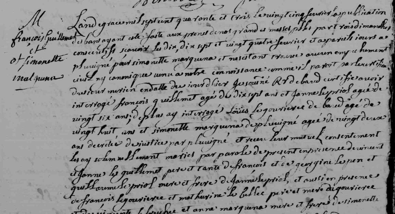 Mariage GOURIEREC (LE) Louis MARGUENAC (MARIENNA) Simonette - 1743 - Baud - 2 |