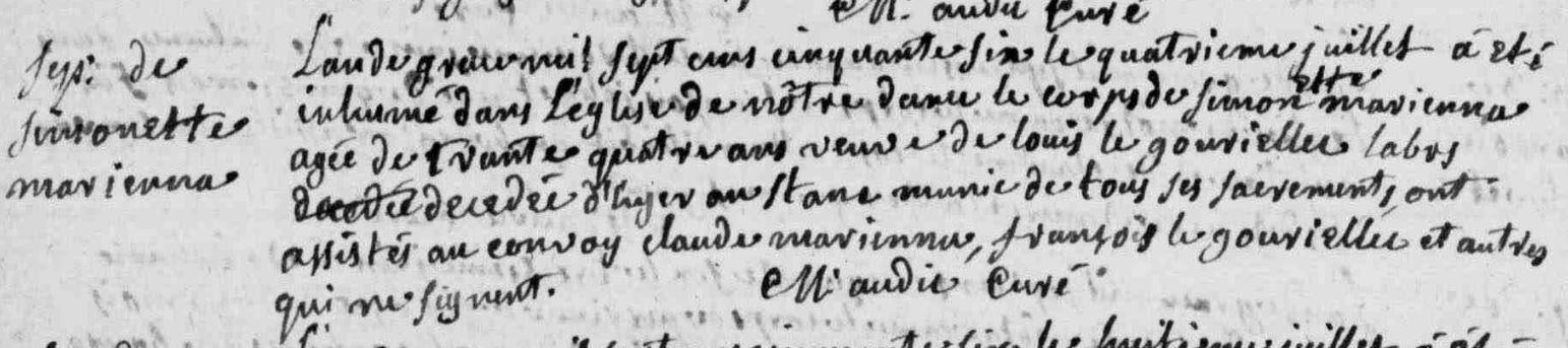 Sépulture MARIENNA Simonette - 1756 - Pluvigner |