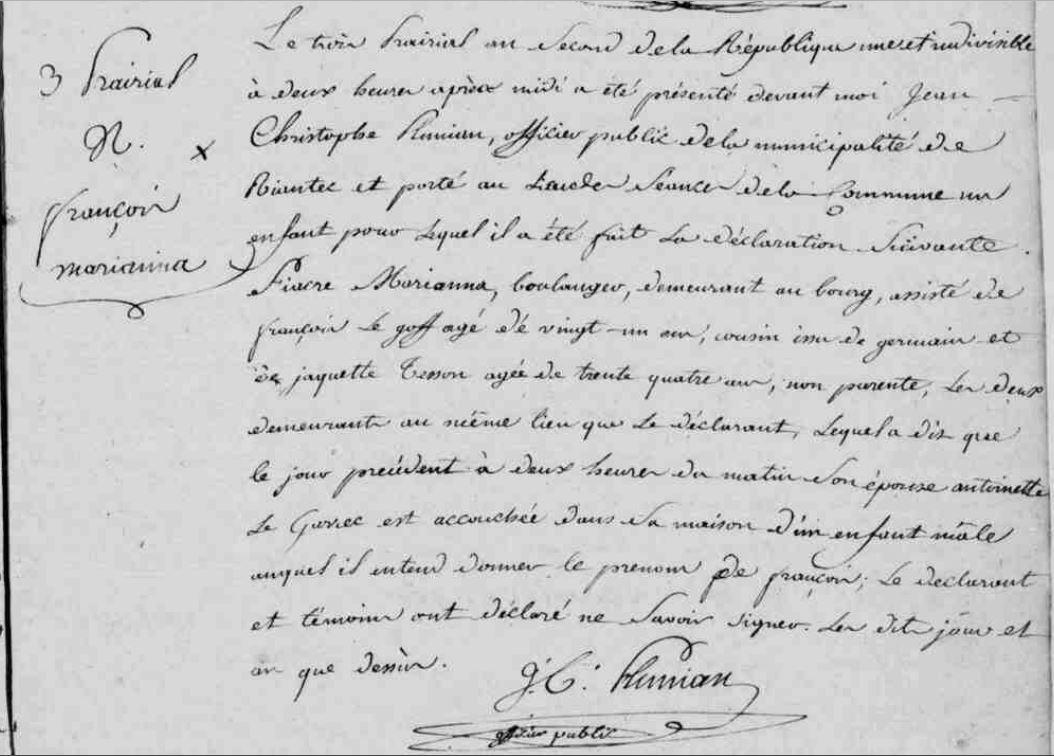 | Naissance MARIANNA François - 1794 - Riantec |