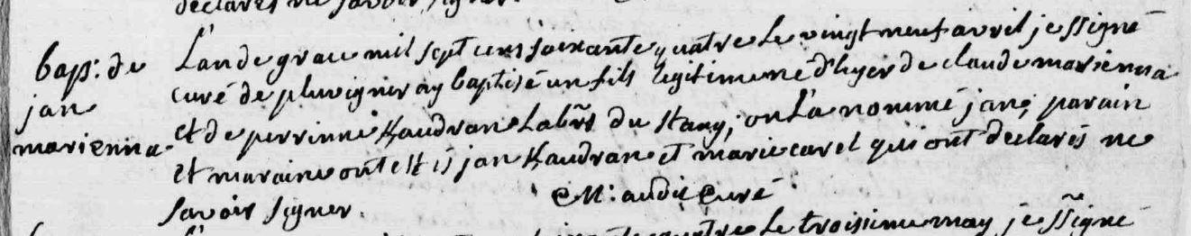 | Baptême MARIENNA Jean - 1764 - Pluvigner |