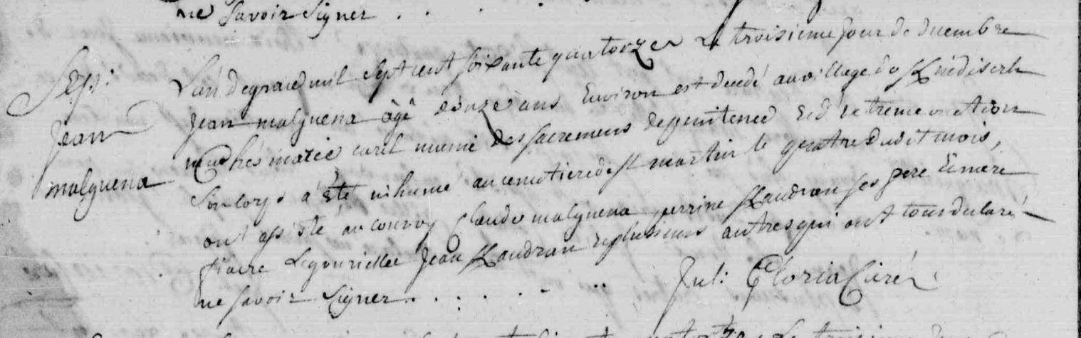 Sépulture MARIENNA Jean - 1774 - Landévant |