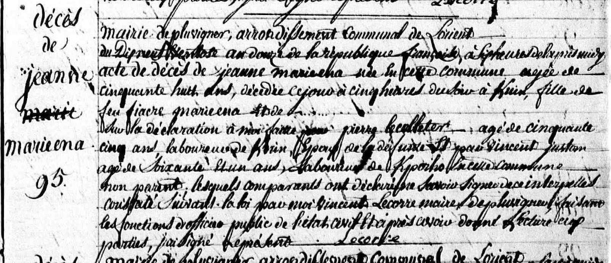 Décès MARIENNA Jeanne - 1804 - Pluvigner |