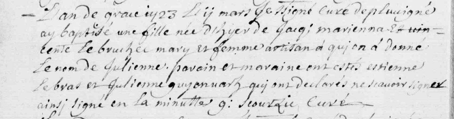 | Baptême MARIENNA Julienne - 1723 - Pluvigner |