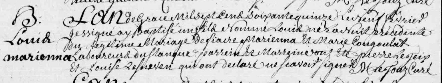 | Baptême MARIENNA Louis - 1775 - Pluvigner |