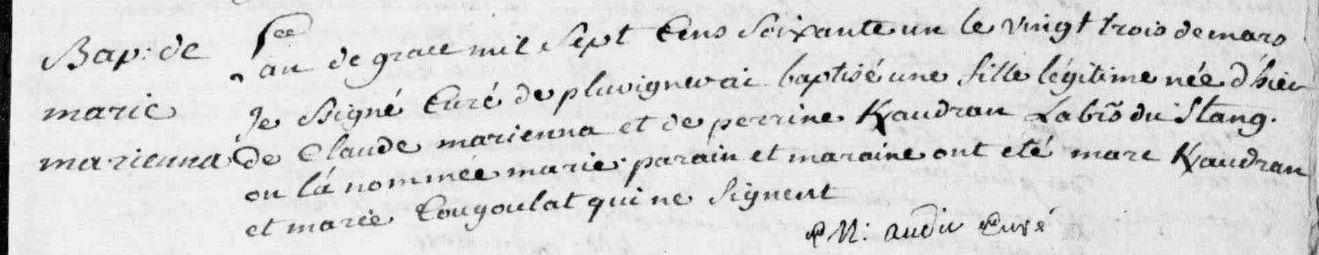 | Baptême MARIENNA Marie - 1761 - Pluvigner |
