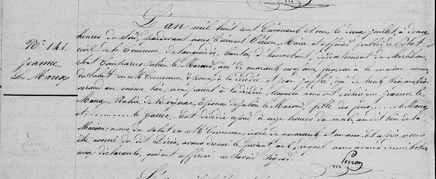 | Décès MAUX (LE) Jeanne - 1851 - Languidic |
