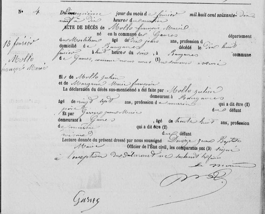 Décès MOLLO François Marie - 1879 - Gâvres |