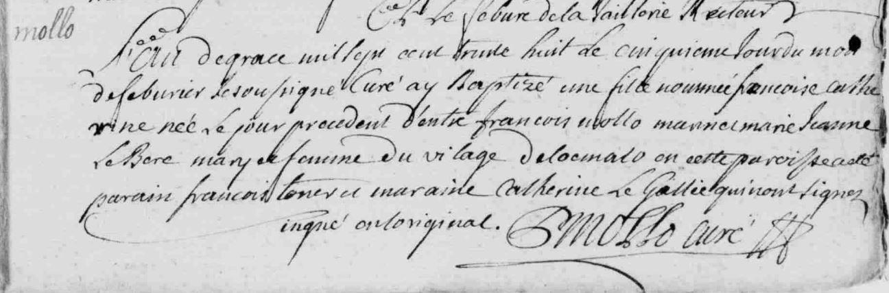 | Baptême MOLLO Françoise Catherine - 1738 - Riantec |