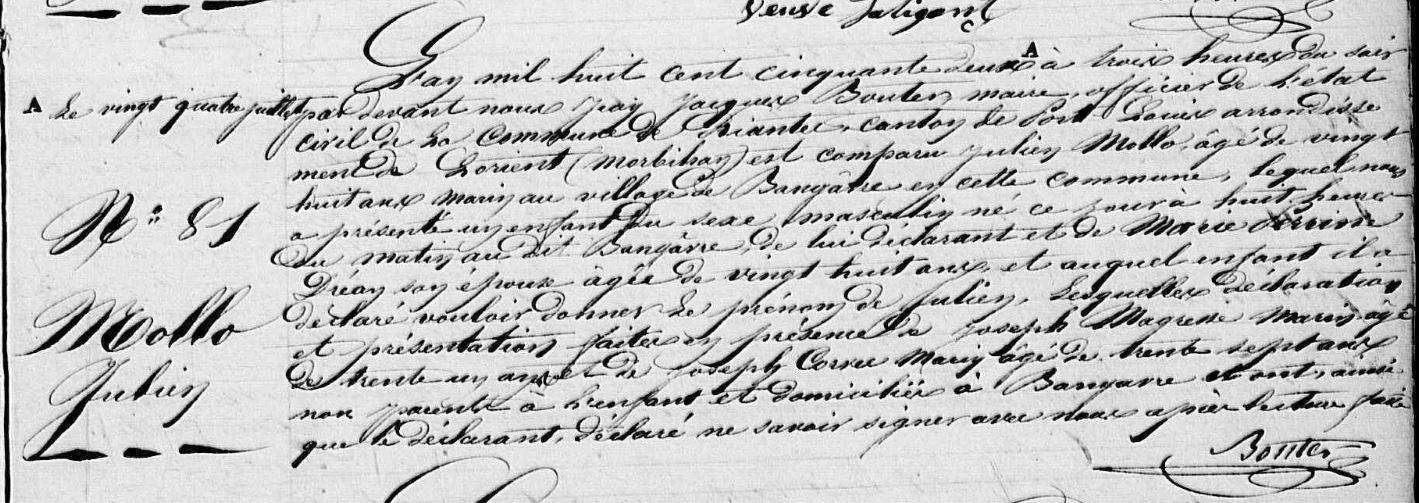| Naissance MOLLO Julien - 1852 - Riantec |