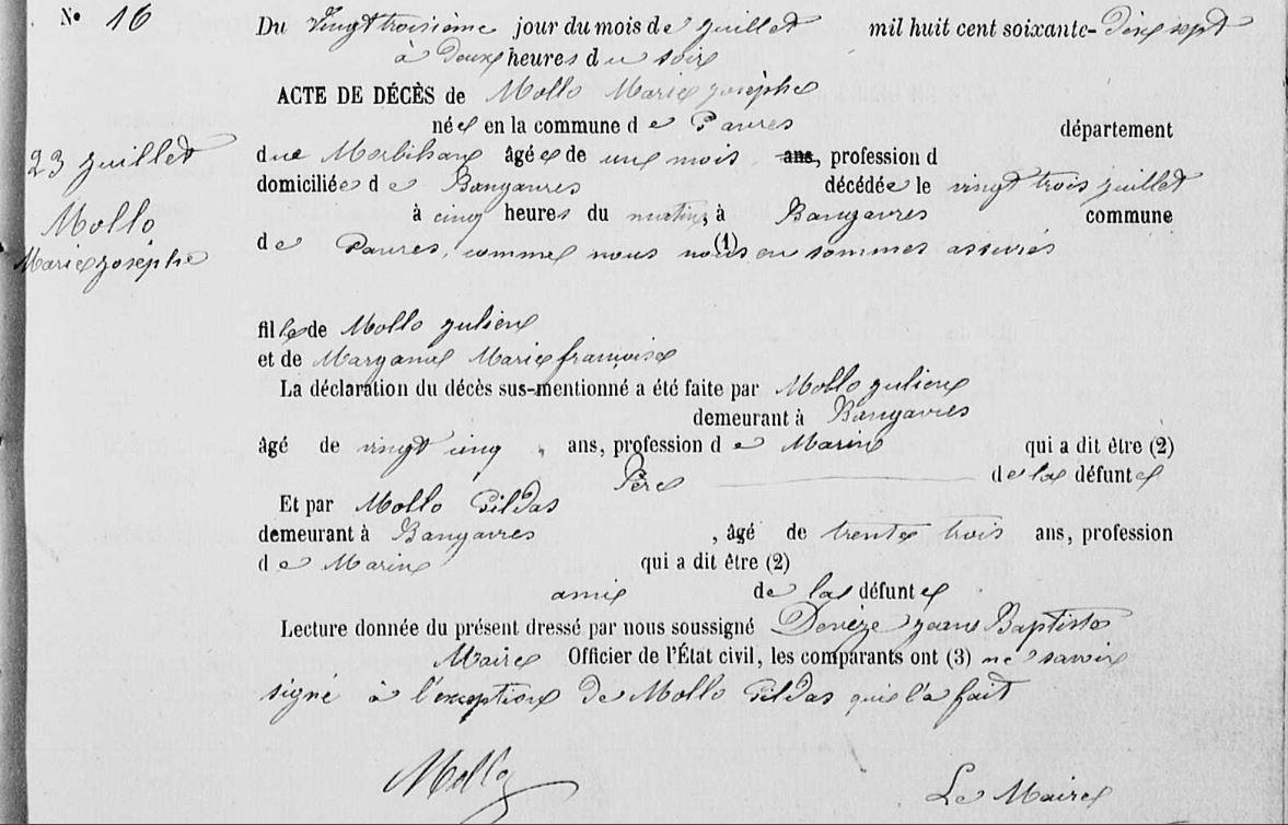 Décès MOLLO Marie Josephe - 1877 - Gâvres |