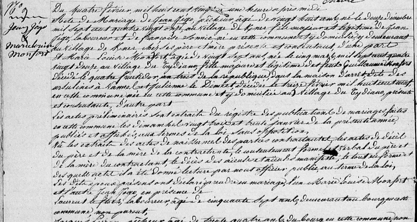 | Mariage JEGO Jean MONTFORT Marie Louise - 1820 - Riantec - 1 |