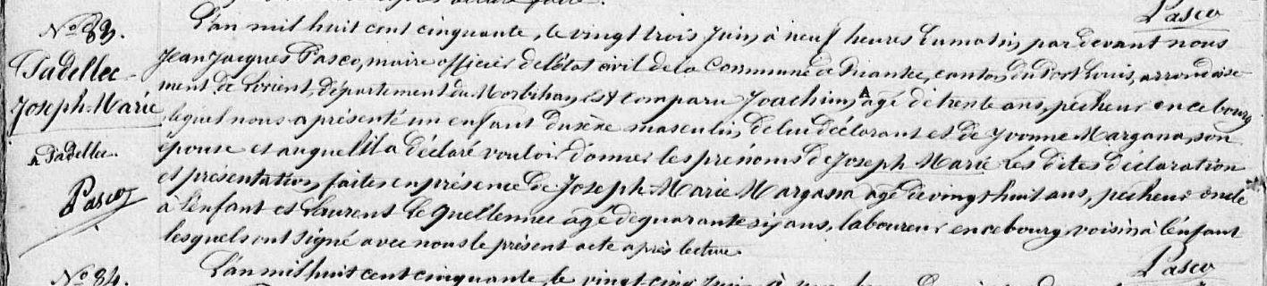 | Naissance PADELLEC Joseph Marie - 1850 - Riantec |