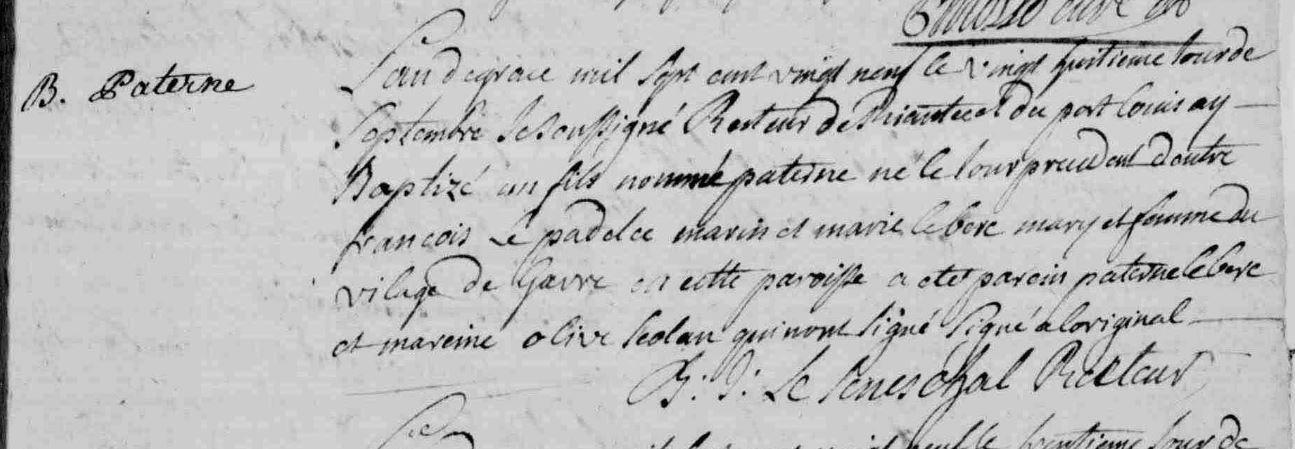 | Baptême PADELLEC (LE) Patern - 1729 - Riantec |