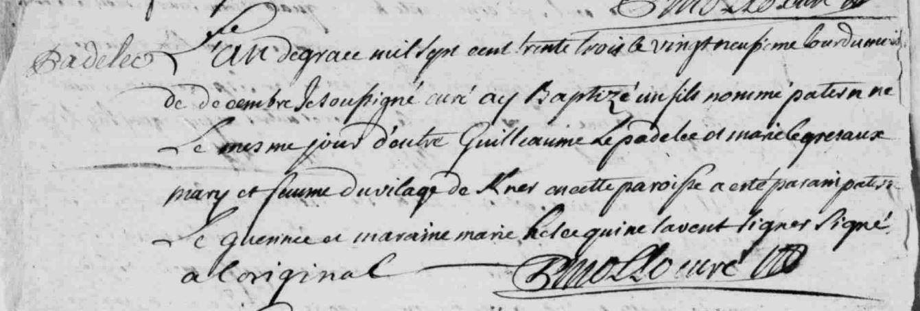 | Baptême PADELLEC (LE) Patern - 1733 - Riantec |