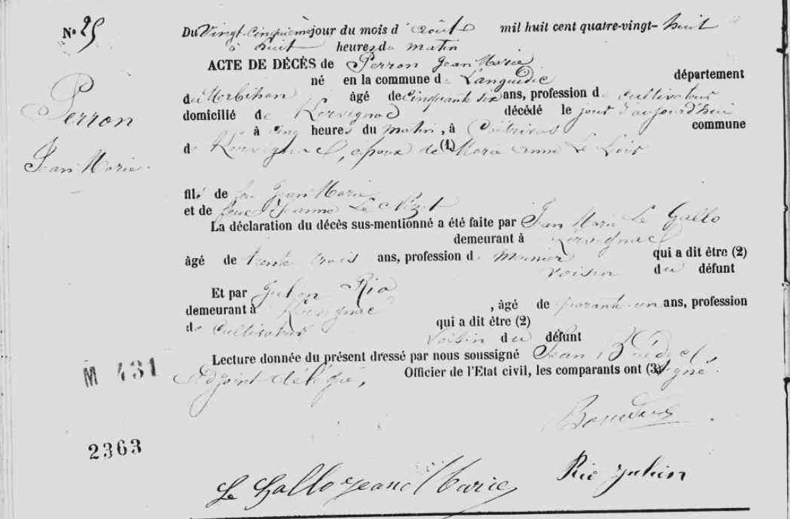 | + < 25/08/1888 Languidic ? (56), - - - NO. |