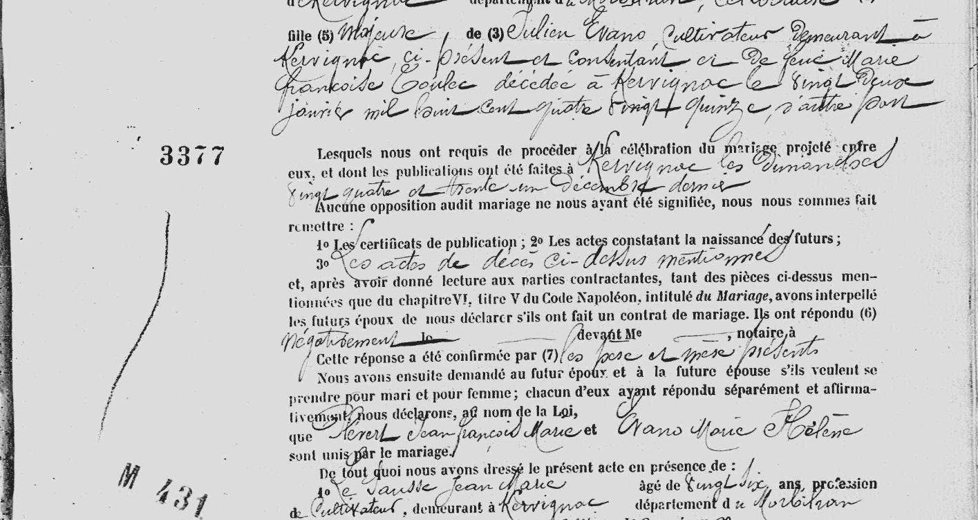 Mariage PLEVERT Jean François Marie EVANO Marie Hélène - 1900 - Kervignac - 3 |