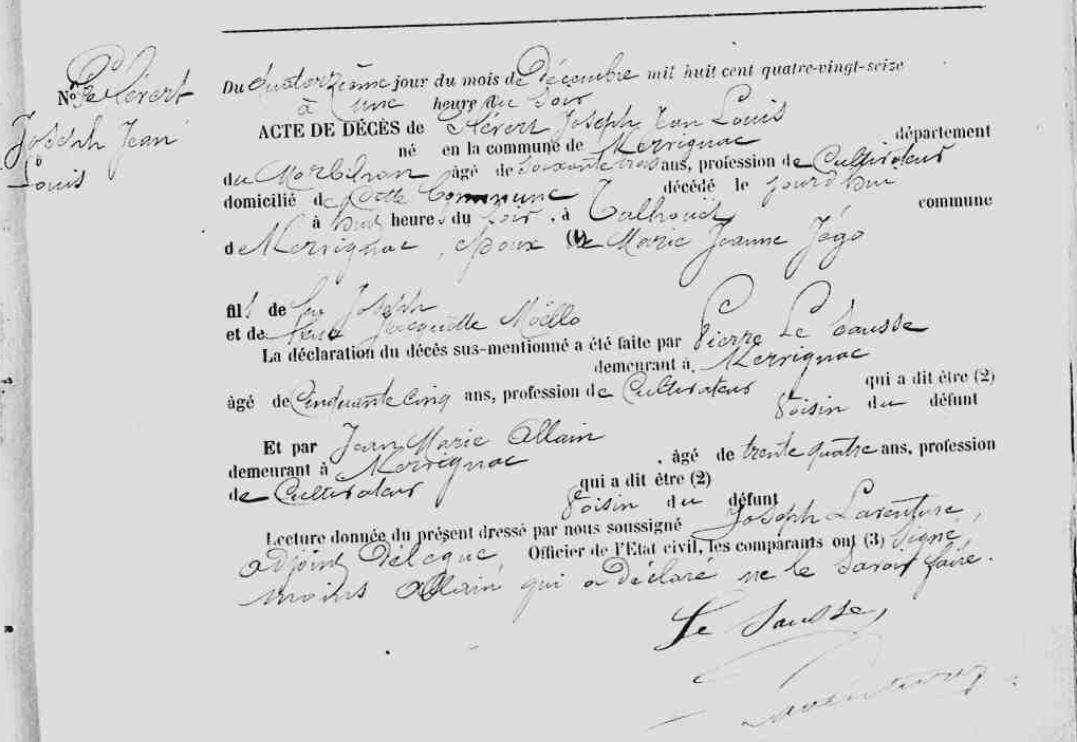 Décès PLEVERT Joseph Jean Louis - 1896 - Kervignac |