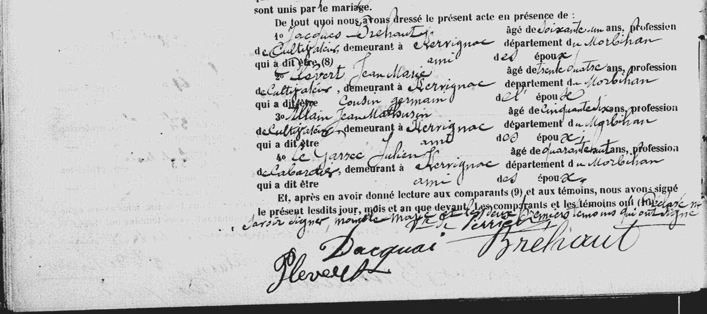 | Mariage PLEVER Louis ROL (LE) Elisabeth - 1852 - Riantec - 1 |