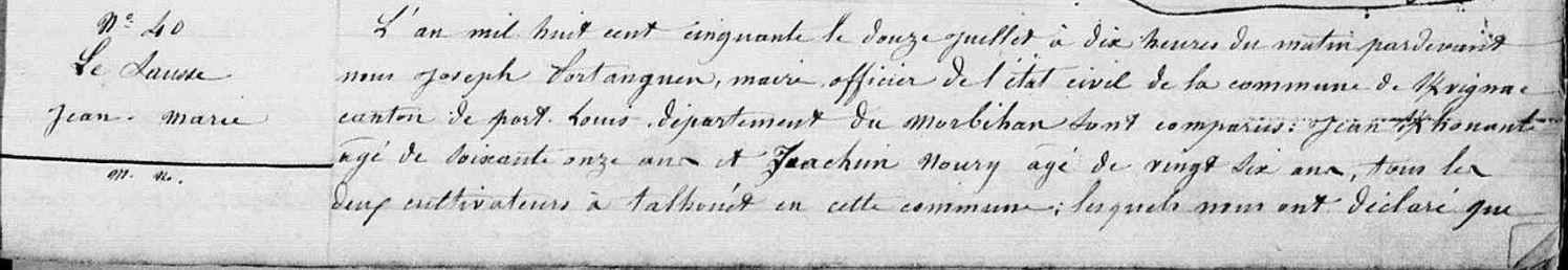 Décès SAUSSE (LE) Jean Marie - 1850 - Kervignac - 1 |