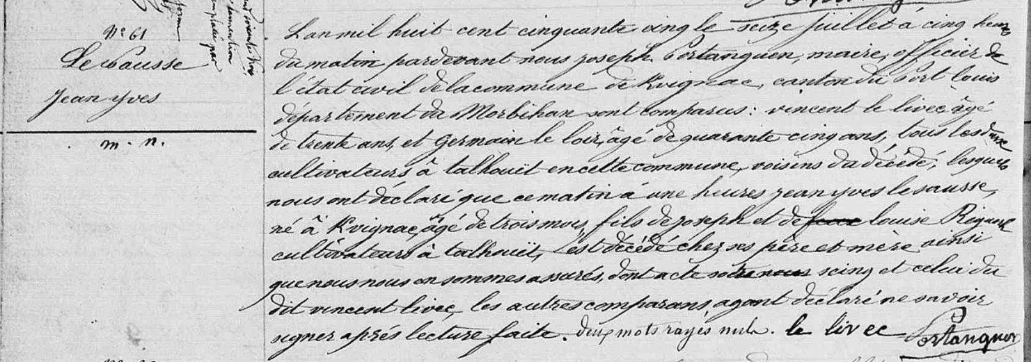 Décès SAUSSE (LE) Jean Yves - 1855 - Kervignac |