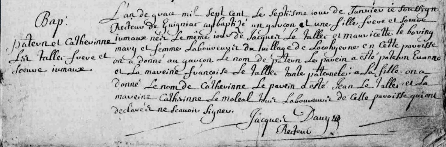 | Baptême TALLEC (LE) Catherine - 1700 - Kervignac |