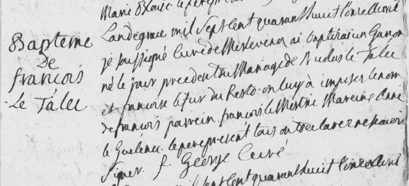 | Baptême TALLEC (LE) François - 1748 - Merlevenez |