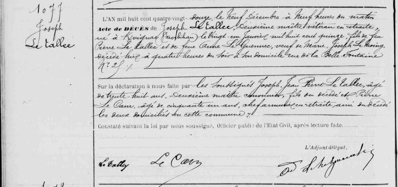 Décès TALLEC (LE) Joseph - 1892 - Lorient |