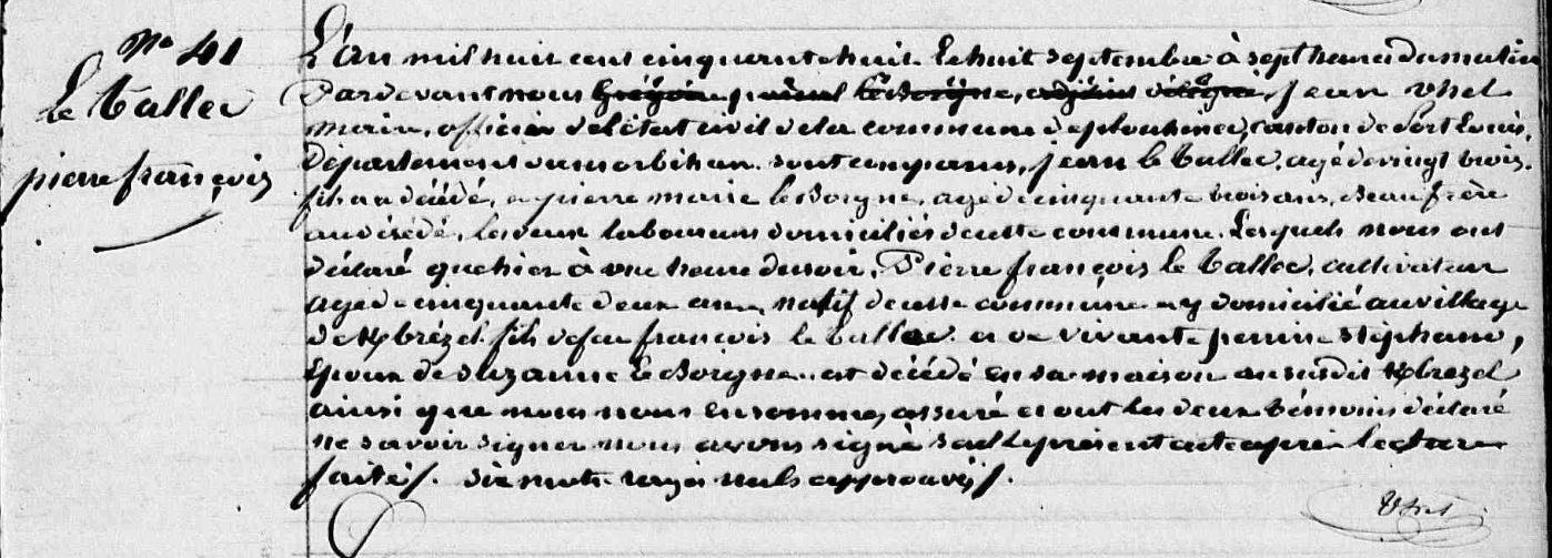 | 3. TALLEC (LE) Joseph Naissance : Date : 09/05/1795 Lieu : Kervignac (56) |