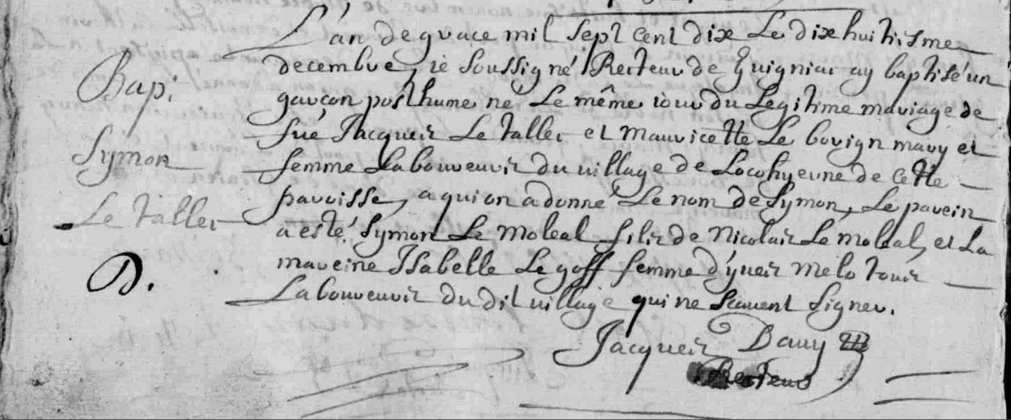 | Baptême TALLEC (LE) Symon - 1710 - Kervignac |