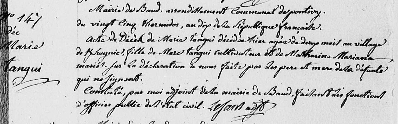 Décès TANGUY Marie - 1802 - Baud |