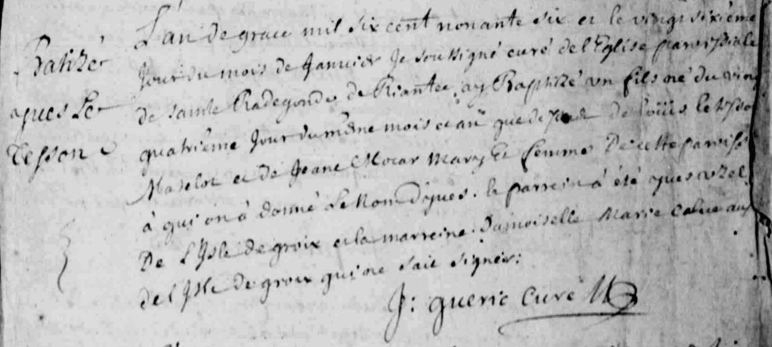 | 4. EVANNO Françoise Naissance : Date : 29/03/1652 Lieu : Quistinic (56) |