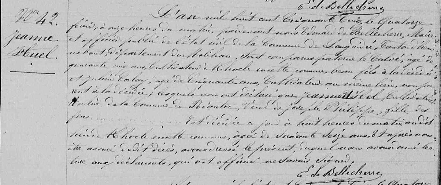 | Décès UHEL Jeanne - 1855 - Languidic |