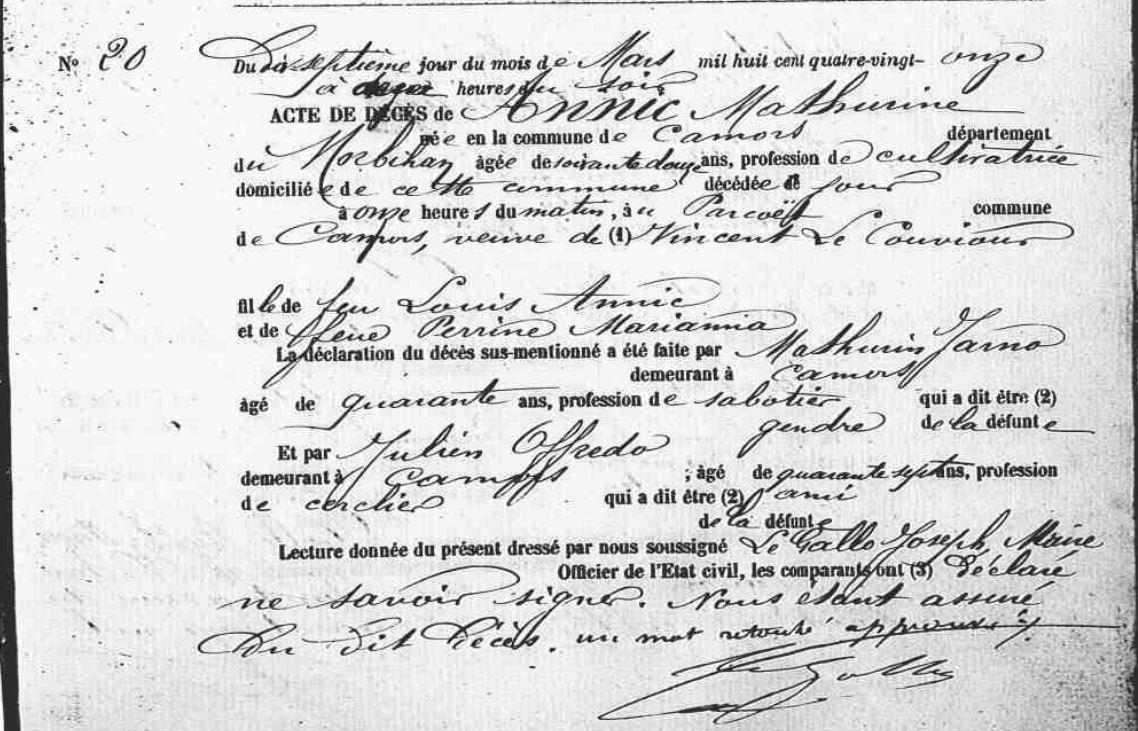 | Décès ANNIC Mathurine - 1891 - Camors |