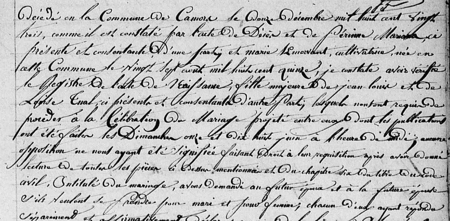 | Mariage : COURIAULT (LE) Vincent, + Camors ? (56), - - - NO. |