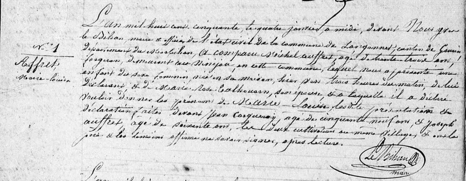 | Naissance AUFFRET Marie Louise - 1850 - Langonnet |