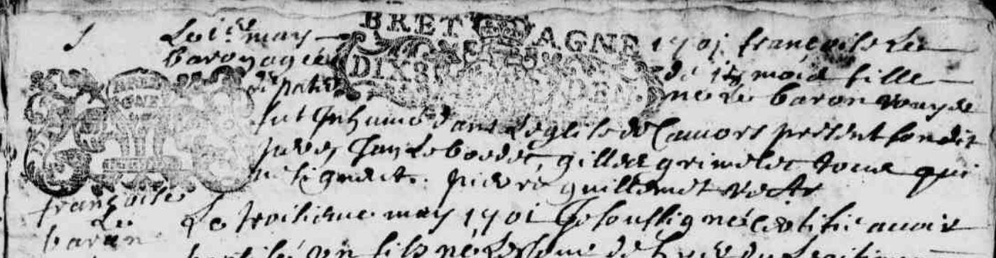 | Baptême BARON (LE) Françoise - 1699 - Baud |