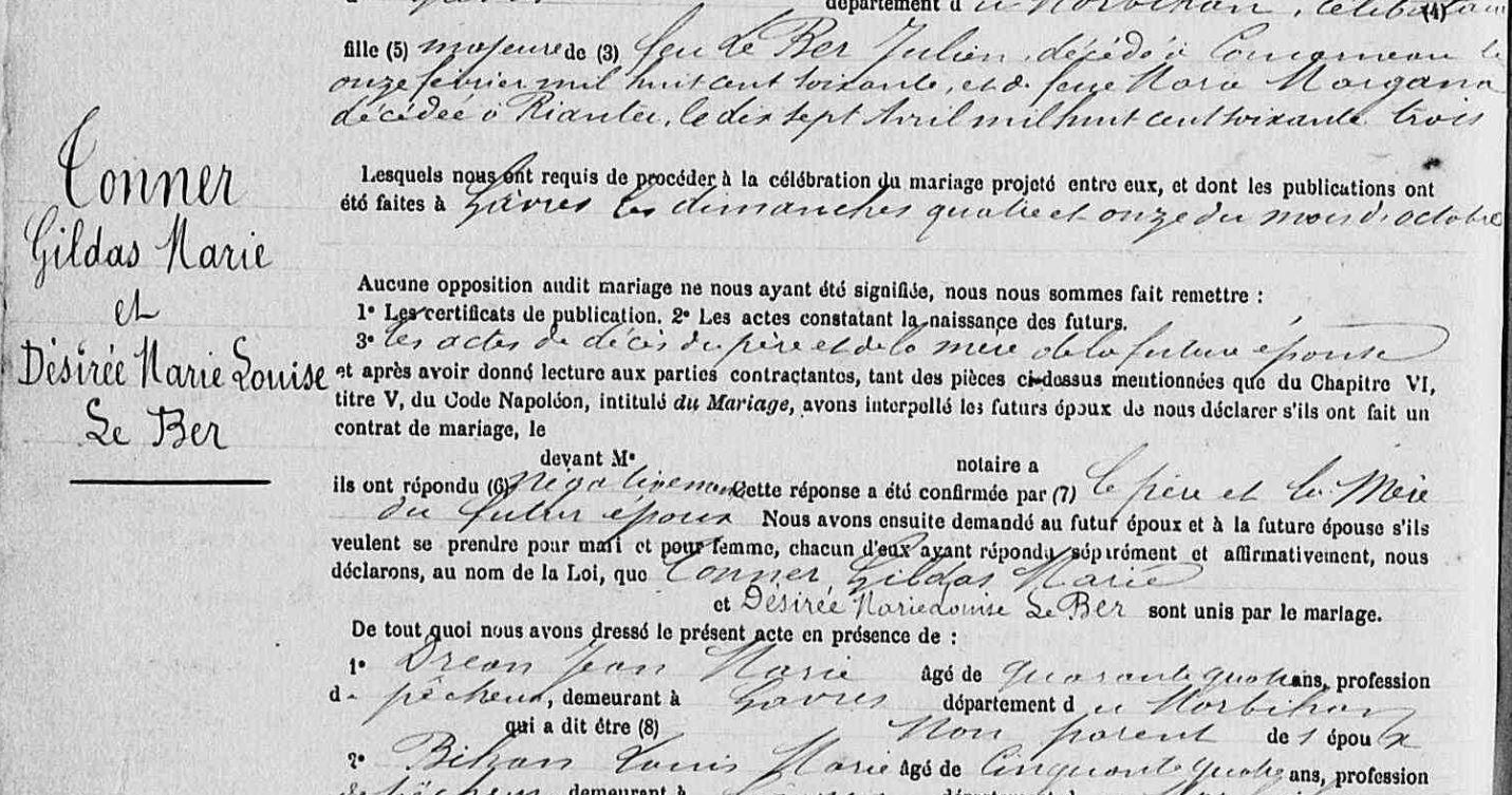 Mariage TONNER Gildas Marie BER (LE) Désirée Marie Louise - 1885 - Gâvres - 3 |