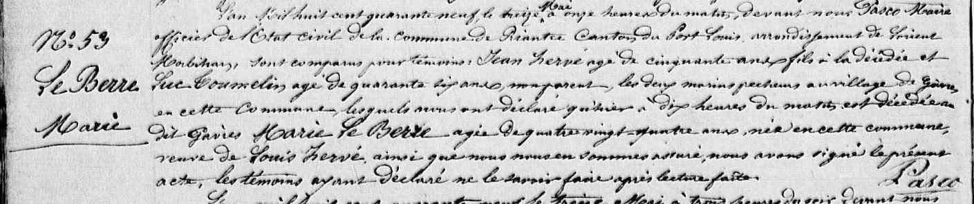 | Décès BER (LE) Marie - 1849 - Riantec |