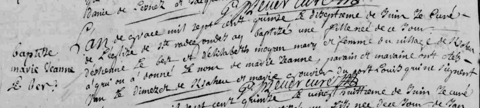 | Baptême BER (LE) Marie Jeanne - 1715 - Riantec |