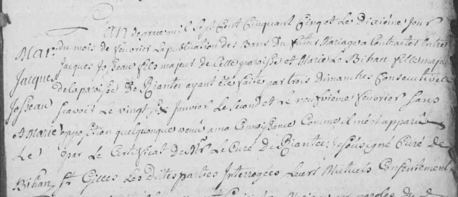 | Mariage JOSSO Jacques BIHAN (LE) Marie - 1755 - Hennebont St-Gilles - 1 |