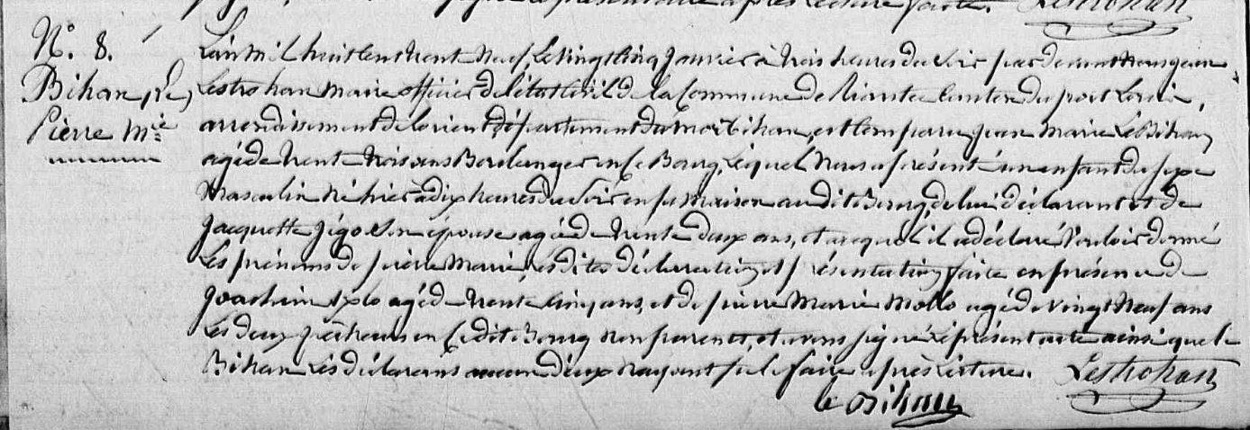| 11. BIHAN (LE) Joachim Naissance : Date : 17/03/1784 Lieu : Riantec (56) |