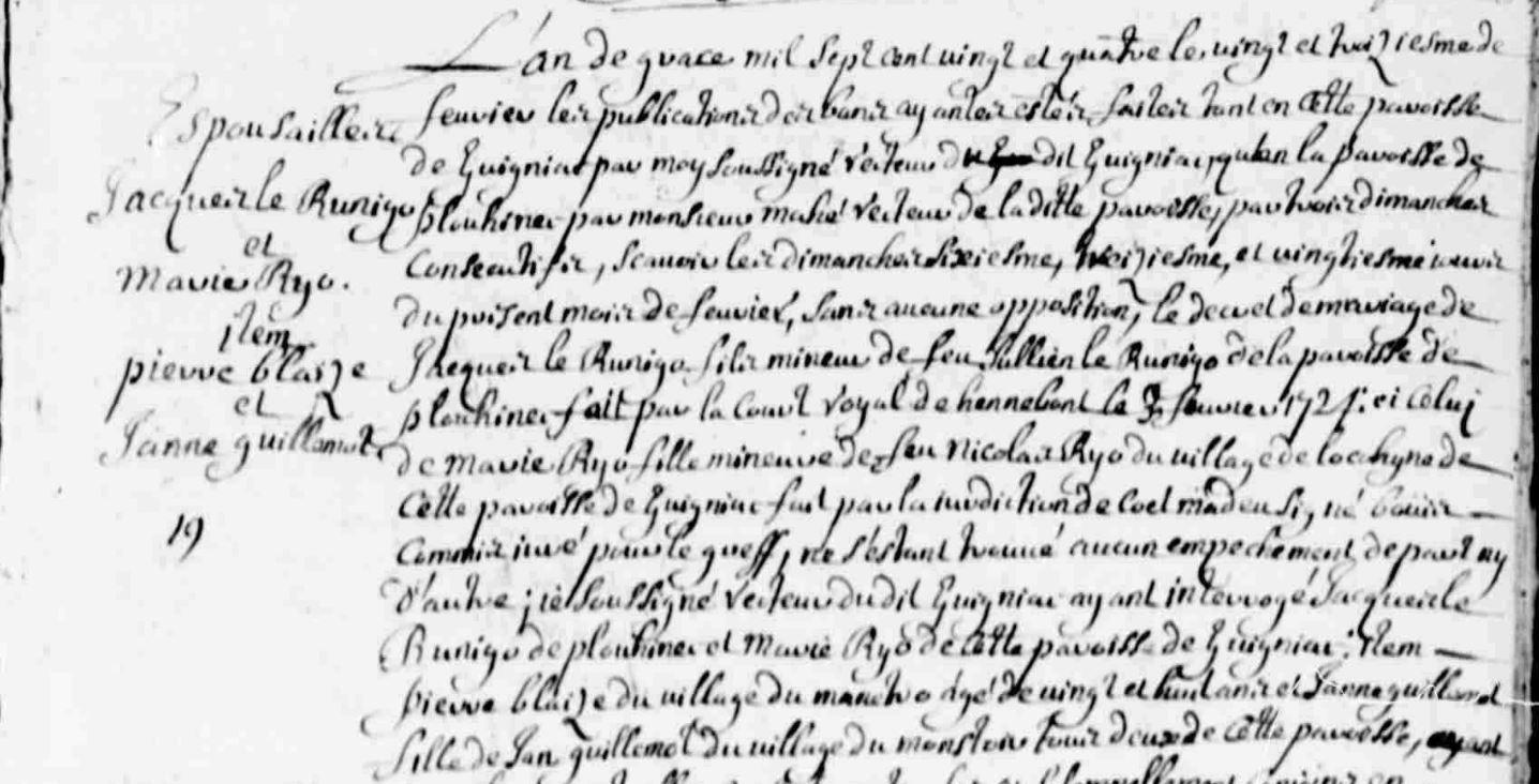 Mariage BLAISE Pierre GUILLEMOT Jeanne - 1724 - Kervignac - 2 |