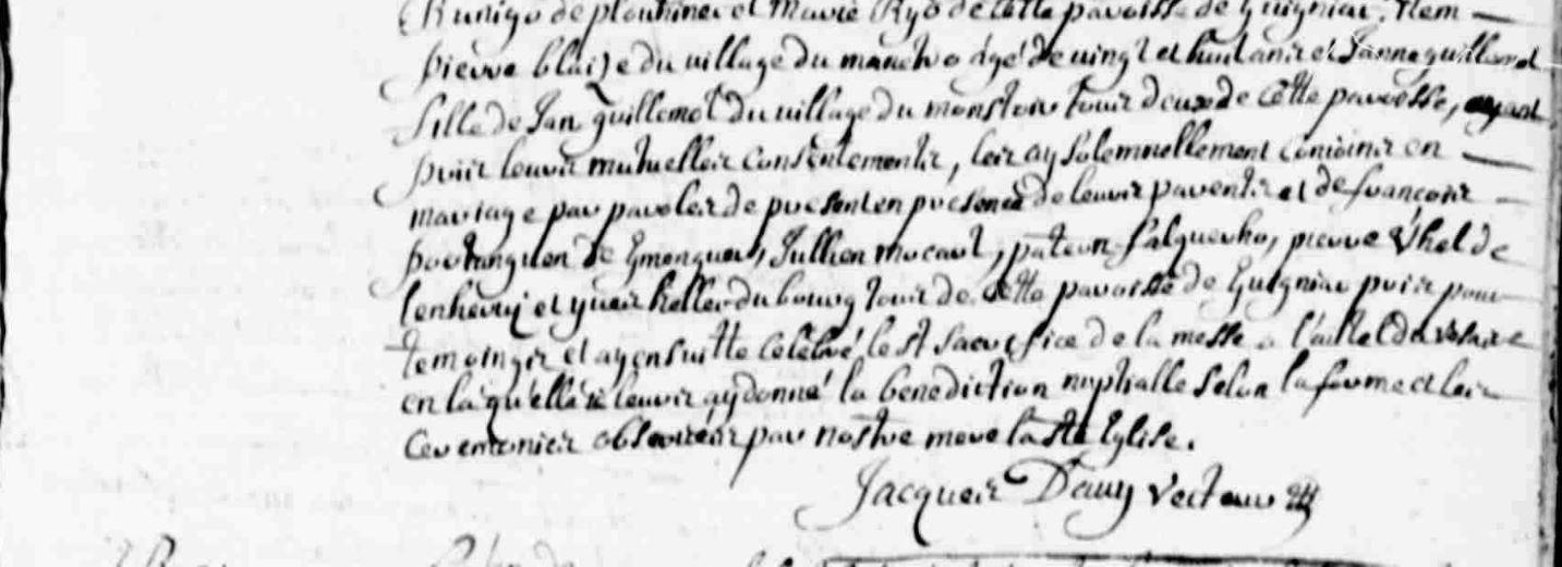 | - BLAISE Pierre, Sosa 654 (Naissance : 1702 Décès : 1760) Union 1724 : GUILLEMOT Jeanne |