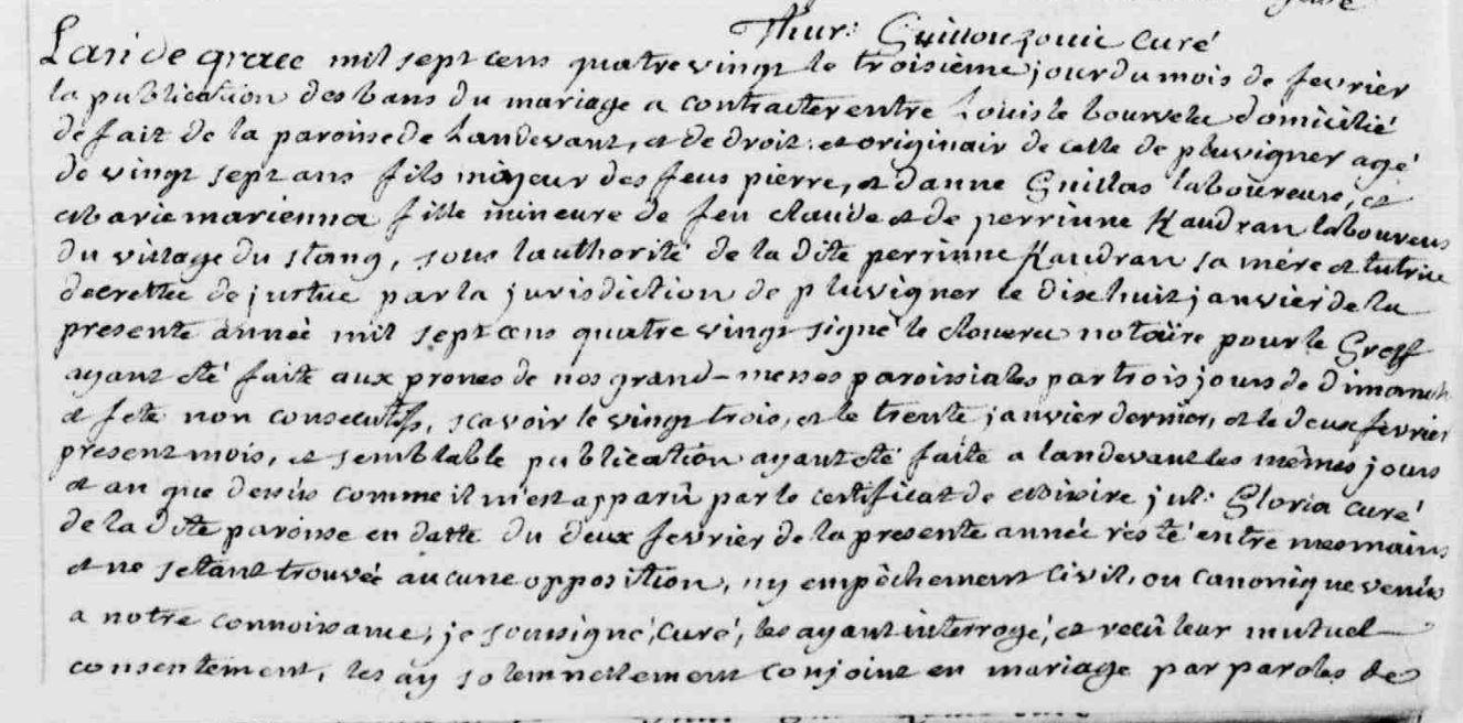 | Mariage BOURVELLEC (LE) Louis MARIENNA Marie - 1780 - Pluvigner - 1 |
